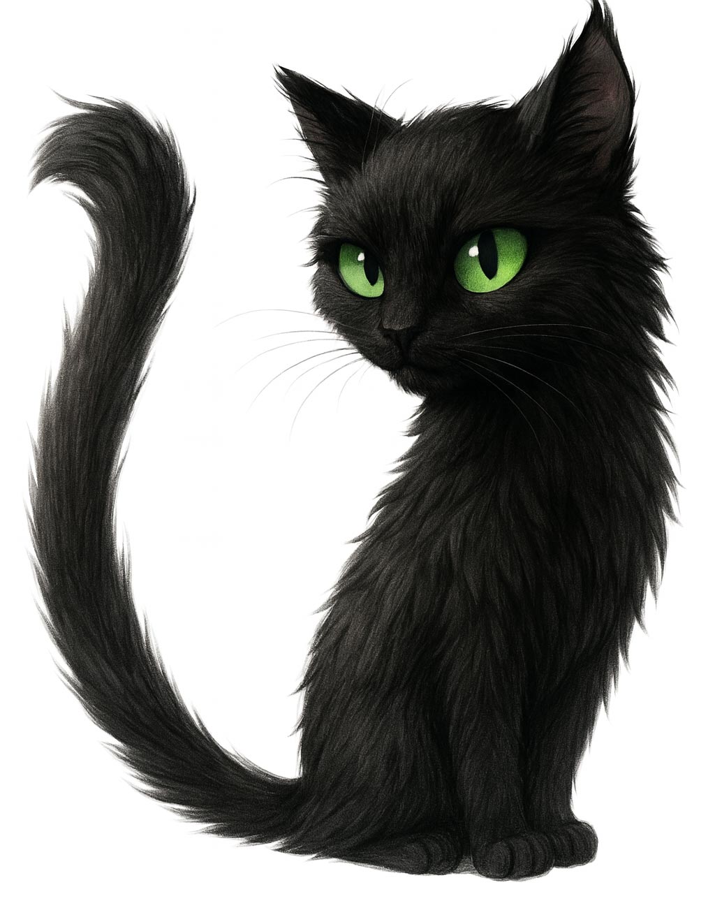 Luci has bright green eyes that sparkle like two glowing buttons from outer space. Her fluffy fur is all scribbly and wiggly, like someone tried to draw a cat while bouncing on a trampoline!