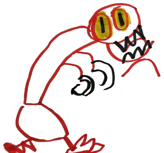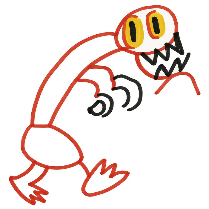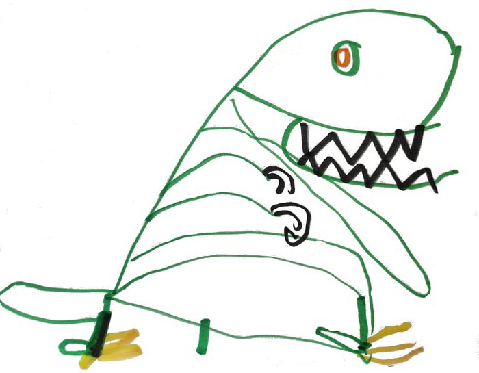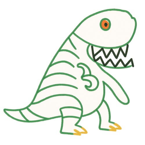 - A huge mouth with zigzaggy shark teeth—chomp chomp chomp!