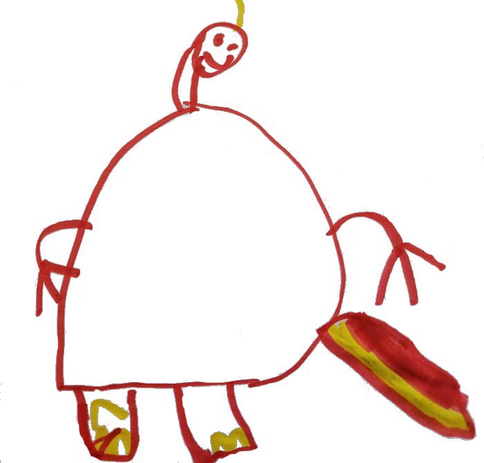 AI: This could be a happy robot or alien with a giant body and little head.